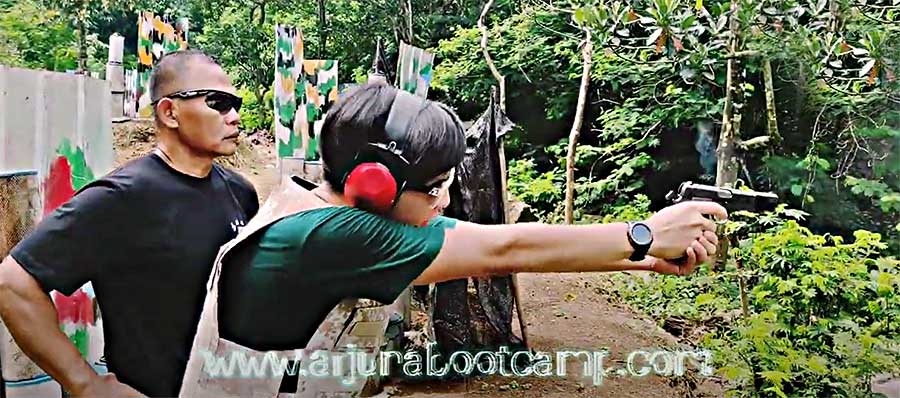LAPANGAN tembak ini berlokasi di Lokananta 3, Kawasan Alam Arjuna dan berada satu area dengan arena Paintball Arjuna Bootcamp.